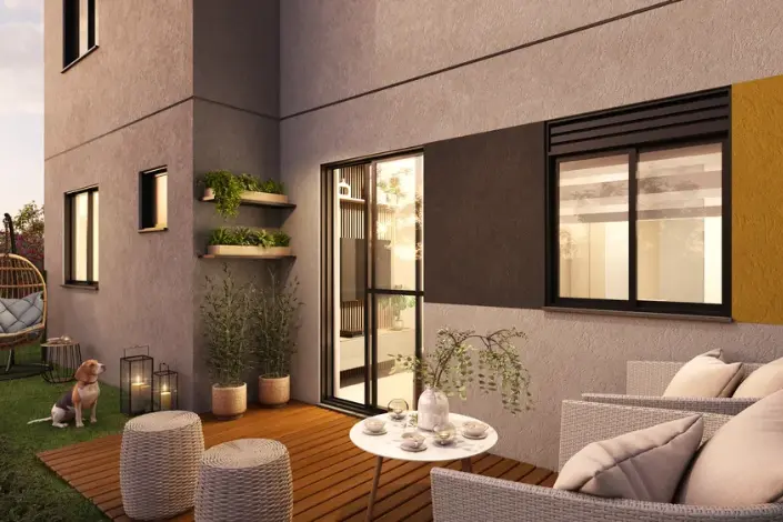 Opções de 2 quartos e tipologias Giardino de até 13,63m² de jardim privativo.